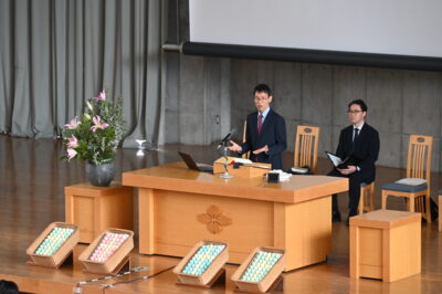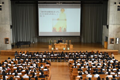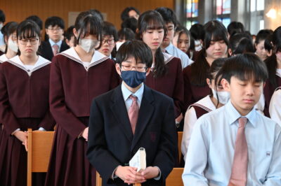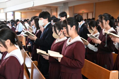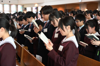 1年生が初めてまもる中高合同で少し長めの礼拝です。