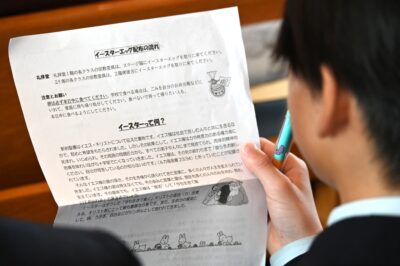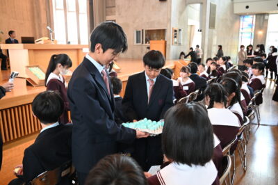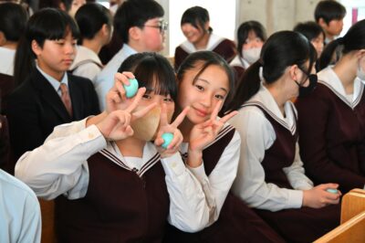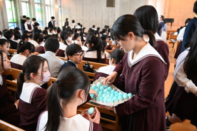 共愛では礼拝後に生徒、教職員全員にイースターエッグが配られます。