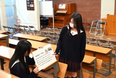 中学2年生は今日の6限、共愛学園高校の各コースの先輩の話を聞く会が行われました。