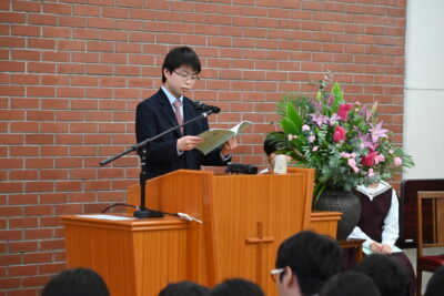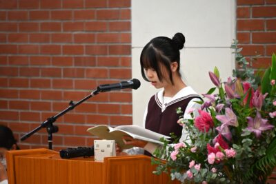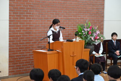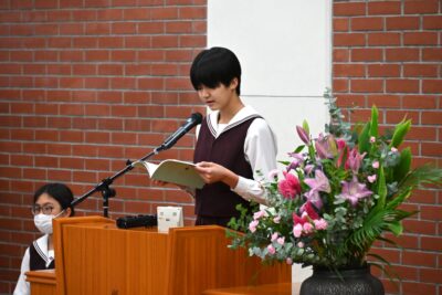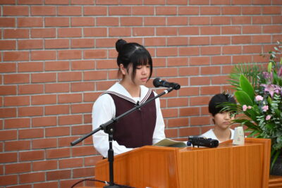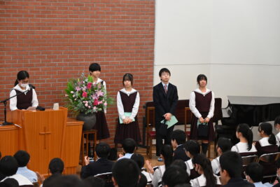 そんな中、今日の礼拝は中学2年生の作文発表でした。