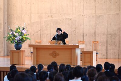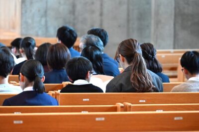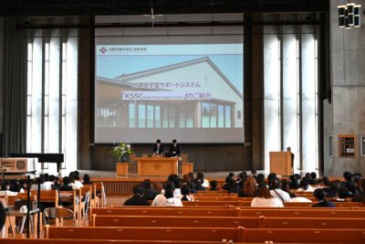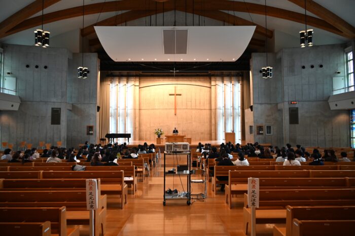 新入生に学校に来てもらい、入学前に準備をしておいてほしいこと、聖書や讃美歌、体育着の受け取りなどがありました。