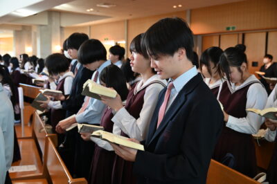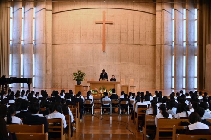今年は新島学園中学高等学校の宗教主任 楠元 桃先生がお話してくださいました。