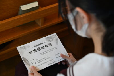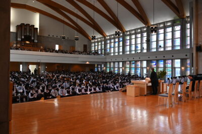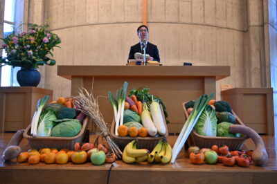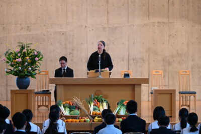 今日は中高合同で収穫感謝礼拝をまもりました。