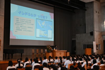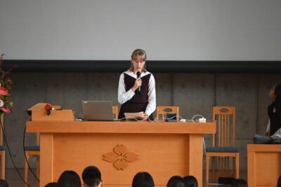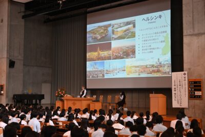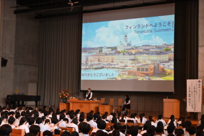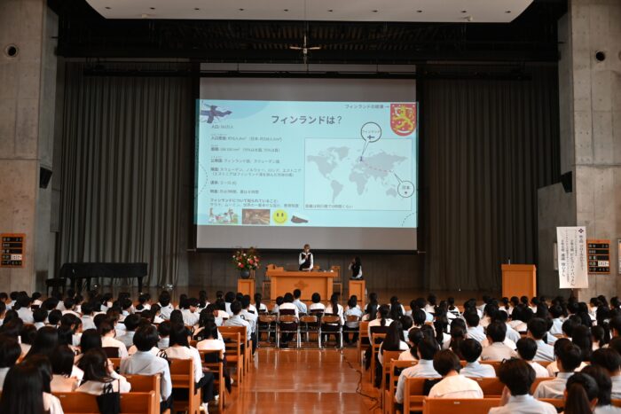 今回は現在、フィンランドからの留学生によるフィンランドについてのプレゼン、インドネシアからの帰国子女である英語科特進コース 渡邉さんによるインドネシアとアメリカ留学の経験についてのプレゼンでした。