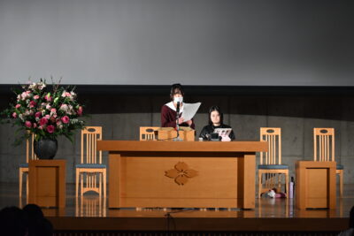 今回は「ACEFバングラディシュ・スタディーツアーに参加して」という題で、2年A組 為貝 椎香先輩とつい先日、英語科進学コースを卒業をした大塚 此華先輩がプレゼンをしてくれました。