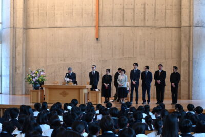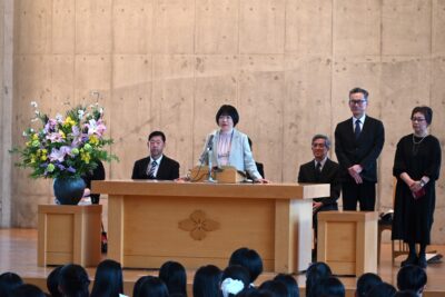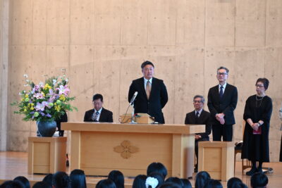 そして、最後には今年度で共愛学園を退任される先生方の紹介があり、中学校の阿部副校長先生や教育相談でお世話になった安藤瑞穂先生、数学でお世話になった福田先生、体育の授業や体育大会などでお世話になった柴木先生が退任されることが発表になりました。