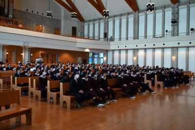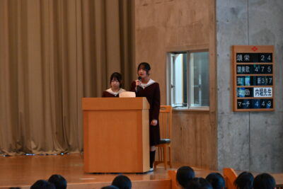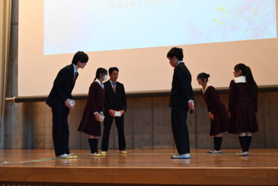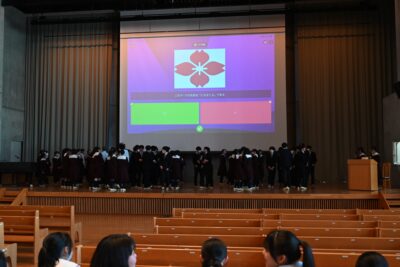 今日の6限は、中学校全校で3年生送別会が行われました。