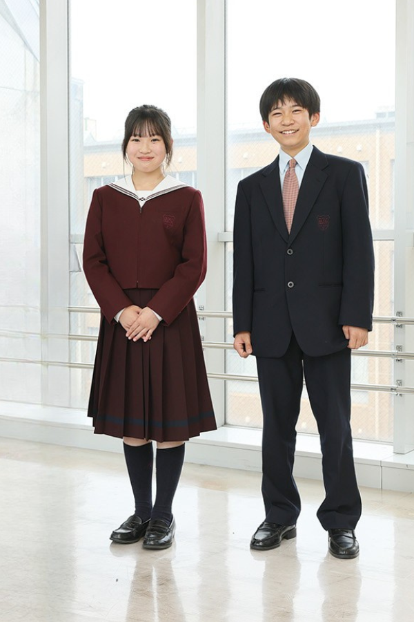 平成10年、ファッションブランド「ZUCCa(ズッカ)」の創設者・小野塚秋良氏が手がけた制服は、聖書の教えである「信仰・希望・愛」を象徴するカラーリングを特徴とし、女子制服の白は「信仰」、男子ブレザーの紺は「希望」、女子制服の赤(ボルドー)は「愛」を表しています。